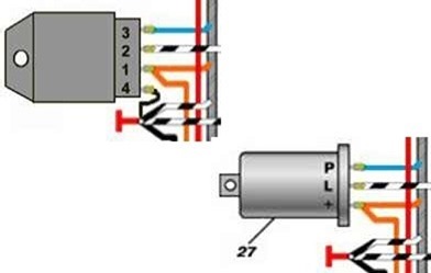 Что хочу заметить, оранжевый и голубой провод узнать легко, а вот третий провод, который на старом реле подключается к контакту "L" — он может быть и фиолетовым, и чёрным и всяким разным. Далее, подключаем на контакты нового реле: