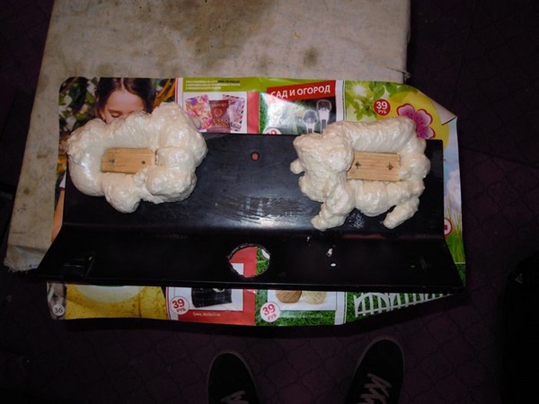 Затем, дабы скрыть деревянные бруски от взора и немного сгладить их наличие, они были залиты пеной.