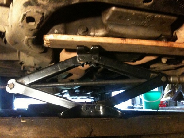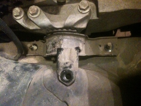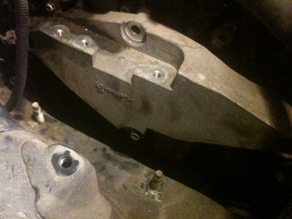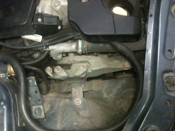 3. Далее снимаем защиту и приподнимаем двигатель, чтобы ослабить нагрузку на опору