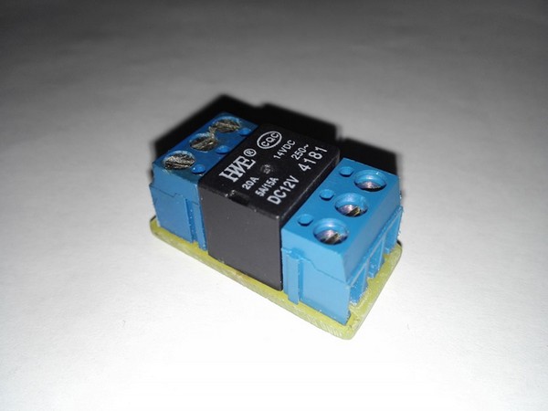 Быстренько изготовил печатную плату и собрал устройство, состоящее из одного реле и 2 клеммников.