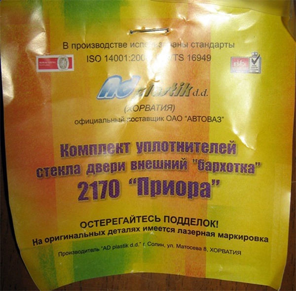 4. Ставим на место наружные бархотки. Чтобы все было по грамотно, они от пПриоры. Внутренние будут новые, родные десяточные.