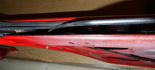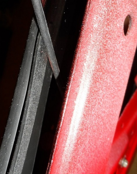 На уплотнителе уже видно потертость, цветной след на стекле — это грунт. За него задевало до установки бархотки.
