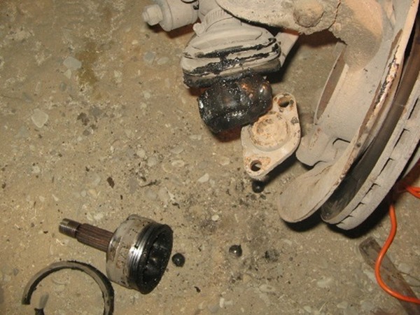 3.Ударом молотка разбиваем сепаратор, прокручиваем и постепенно выкидываем шарики. Снимаем внешнюю часть ШРУС(фото 4).