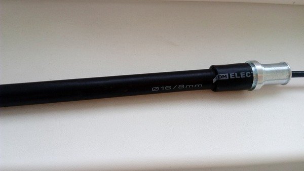 Итак, на радиорынке был куплен термокембрик диаметром 16 (тросик брал с собой, чтобы проверить налезает через металлические бобышки или нет). Тросики около 2 метров.