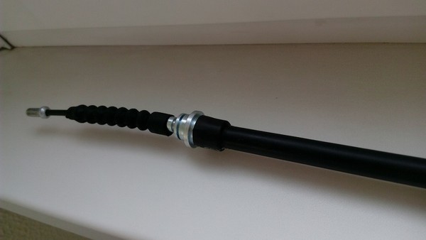 Снял с нового тросика фиксатор и натянул кембрик по всей длине.