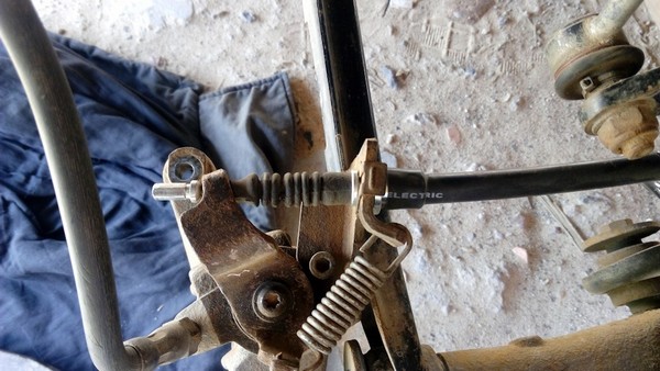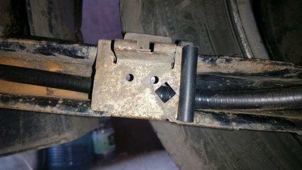 А вот последнее крепление, которое было на рычаге развалилось. Тогда я решил проложить тросик внутри рычага и скобой со стяжкой зафиксировать.