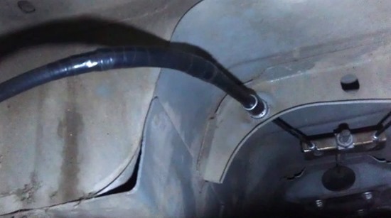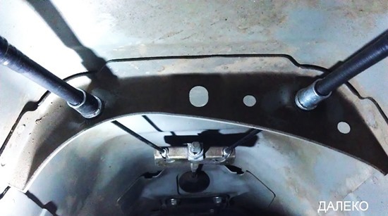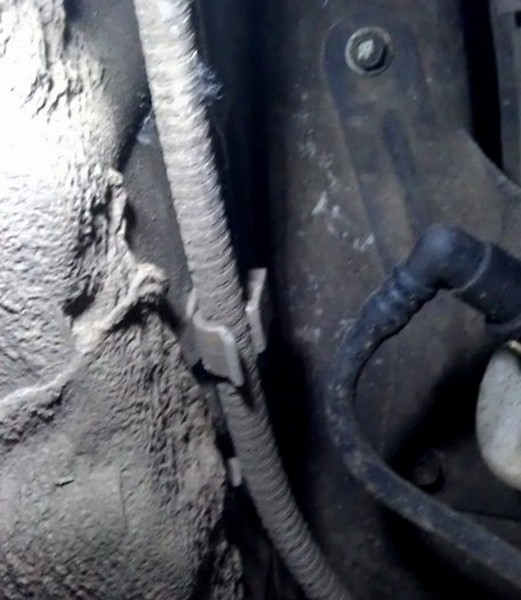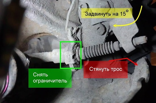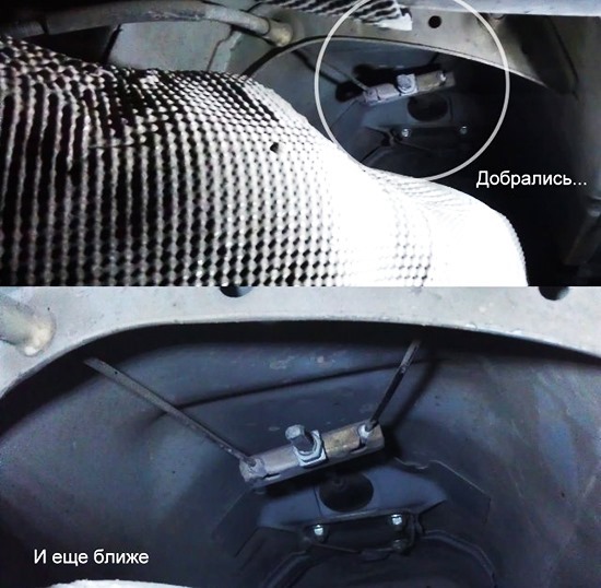 Теперь в гараже снимаем тепловой экран и вынимаем старые тросики.