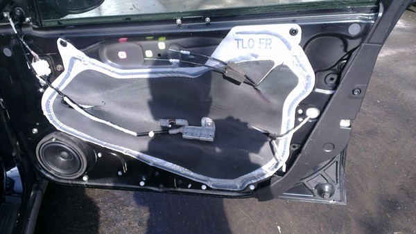 Мне очень понравилось, как все сделано в Хонде: все места соприкосновения пластика дверных карт и металла двери проклеены пористой резиной, что исключает скрипы; штатная шумо/пыле-изоляция представлена пленкой с наклеенной сверху пористой резиной; все очень аккуратно и грамотно сделано.