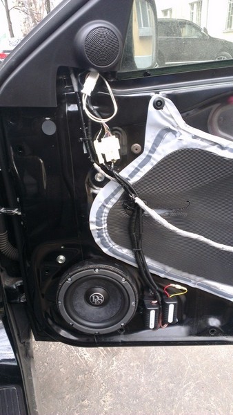 Передние динамики у меня уже хрипят, поэтому первым делом была заменена акустика в дверях (следующая статья об этом).