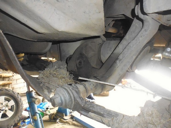 Вытаскиваем шрус, смещая мост немного по часовой стрелке если смотреть сверху и немного вниз.