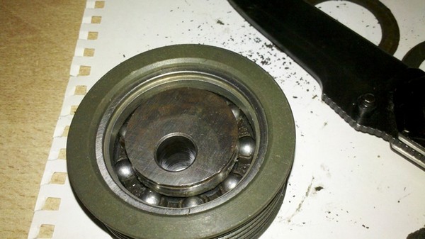 Сняв старый ролик, и покрутив его в руках, я был неприятно удивлен. Как оказалось, он крутился заметно лучше нового, но делал это он довольно громко.