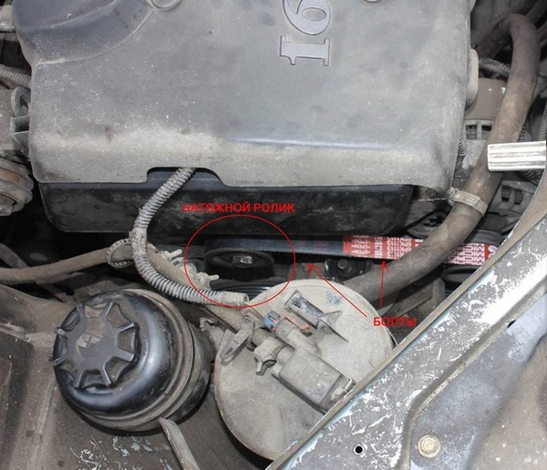2) Регулировка натяжения ремня (в моем случае) происходила при помощи натяжного ролика. Натяжного болта НЕТ!
