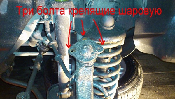 - Откручиваем три болта крепящих верхнюю шаровую к рычагу