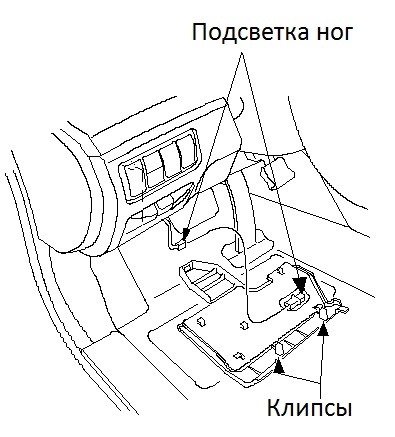 Была запланирована замена. Я, честно говоря, ожидал, что будет немножко посложнее с заменой, но, к счастью, все прошло довольно гладко и просто. Хотя, замена этого стекла довольно редкая и не популярная операция и надеюсь, что никому не придётся ее лишний раз менять, но все-таки поделюсь инструкцией по замене этого стекла, если кому-то это будет необходимо. Итак, для начала, нам нужно снять пластиковую крышку под рулем возле ног водителя, в которой находится подсветка пространства ног. Для этого, нужно отстегнуть две клипсы в верхней части крышки, и она снимется. Внутри мы увидим единственный провод питания, который и идет как раз к подсветке. Его тоже отцепляем. Схематически это выглядит примерно так: