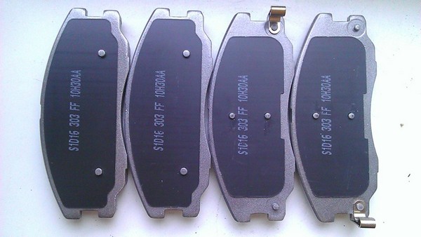 Пластина — основа колодки также окрашена, только в серый цвет и слой лежит, гораздо ровнее, нежели на простых колодках. Также имеется антискриповая пластина на внешней части каждой колодки.