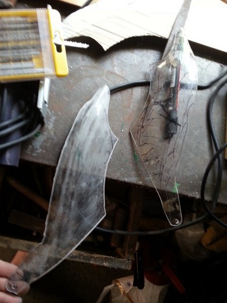 Далее — шаблон на оргстекло, обводим, вырезаем и в духовку на 5-7 минут при т. 130 градусов.