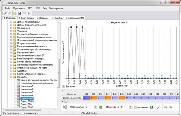 При превышении порога, можно заставить мигать лампу СЕ. При этом, лампа СЕ может мигать по пяти разным алгоритмам, выдавая разную морзянку, сама морзянка настраивается как душе угодно. Приоритет мигания будет иметь более высшая сработавшая индикация.