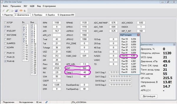 Теперь про алгоритмы в прошивке, связанные с дополнительными датчиками температуры и выхлопных газов.