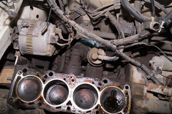 Прокладка осталась на блоке и зрелище открылось наипечальнейшее…