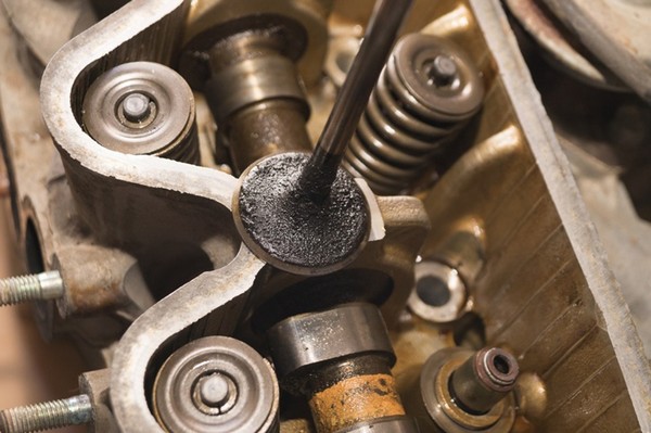 Сделал 4 выпускных клапана, перешел на сторону впуска и понял, что замена колпачков не превентивная. Все 4 впускных клапаны были покрыты нагаром. Если увеличить фото — будут хорошо видны эти хохоряжки)
