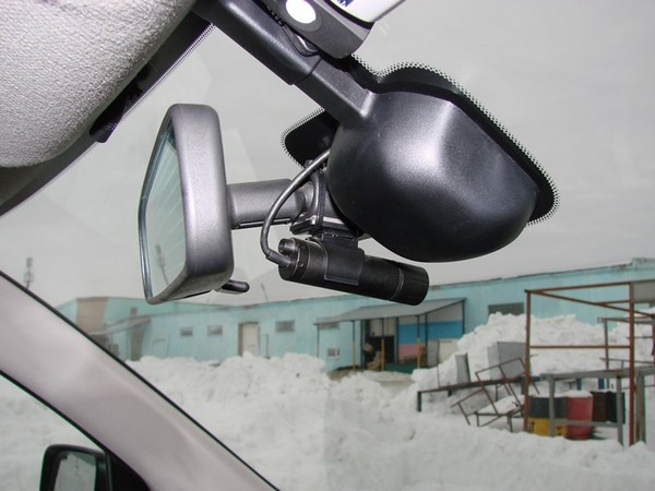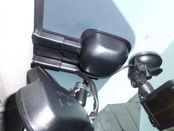 Камеру закрепил на стойке зеркала, провод завел в корпус датчика дождя и далее под потолком и по правой стойке опустил в бардачок. Камера на креплении может вращаться в горизонтали, можно легко повернуть на водительское стекло.