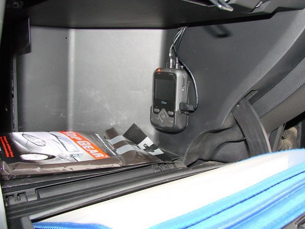 Сам регистратор живет в бардачке. Приклеил держатель на скотч 3М.