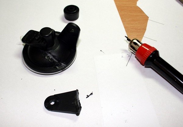 Берем паяльник (выжигатель) и отпиливаем одну ногу от присоски. У меня валялась запасная присоска от старого, сгоревшего регика. Нога нам нужна та которая с зубчиками. Вторая нога без зубчиков.