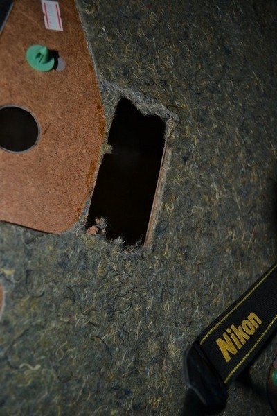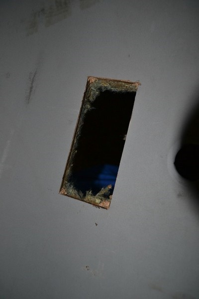 Взял болгарку и вырезал нужный прямоугольник, предварительно сняв замеры. Так как жалко было обшивку, а вдруг не получится?