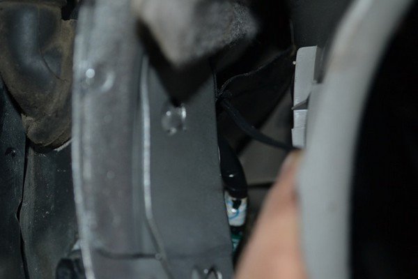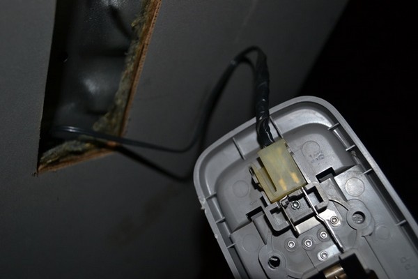 Снимаем левую пластиковую заглушку с балки нашей полочки и будем крепить на нее две клеммы (плюс и масса)