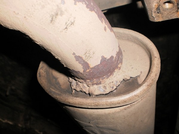 Года три назад я вроде как его уже менял (припоминается что-то мне такое), но на однослойный. Соответственно, все это время он регулярно окунался и иногда целиком в воду. В итоге, когда я снял глушитель подварить, прогоревшее отверстие для слива конденсата, я услышал, что внутри все отгнило и катается туда-сюда со страшными звуками. Было принято решение заменить.