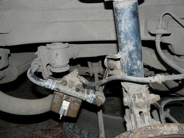 Застопоренный суппорт подвешен (временно) на стабилизаторе.