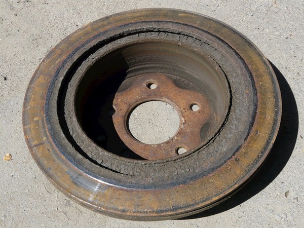 Минимальная нормированная толщина диска — 14.4мм Толщина нового — 16мм Родной на правой стороне стёрт до предела в 14мм. И стёрт неравномерно по причине перекоса скобы на закисших пальцах (внутренней колодкой тёрло уже металлом)
