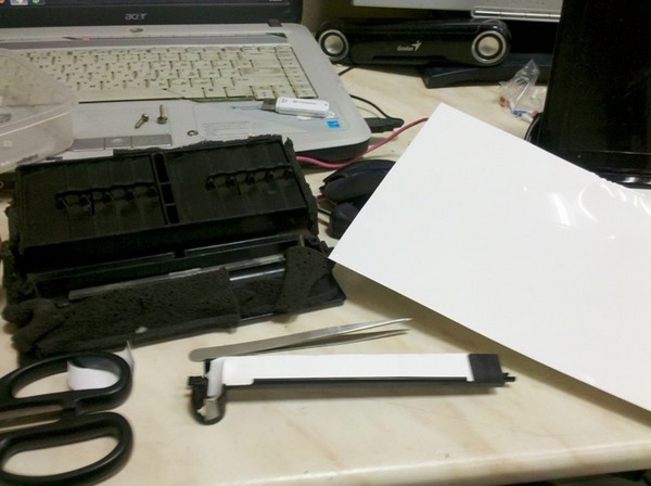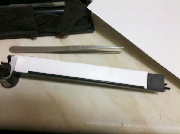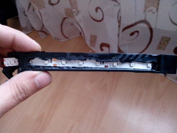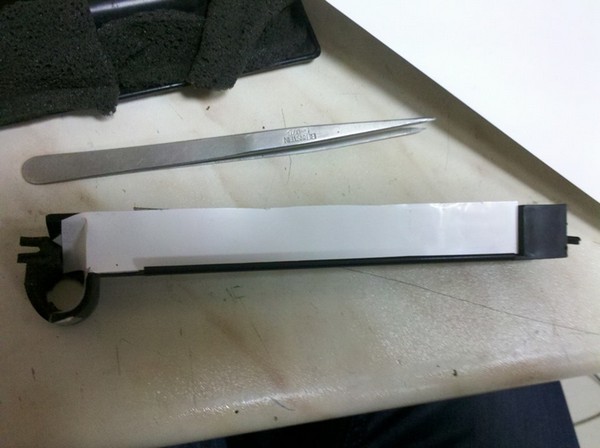 Я наклеил на удерживающую планку, полоску глянцевой бумаги. Бумагу я использовал не простую, а ту, которая используется в качестве рассеивателя подсветки в ноутбучной LED матрице.