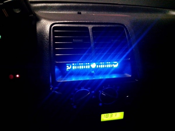 Самым популярным способом является проделывание отверстий в удерживающей шкалу планке и подсветка шкалы диодной лентой.
