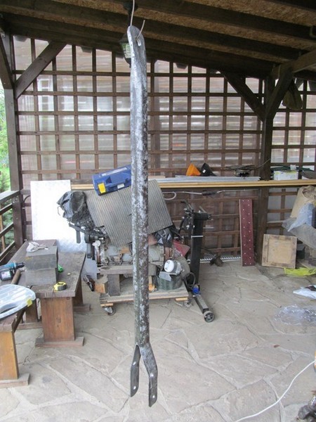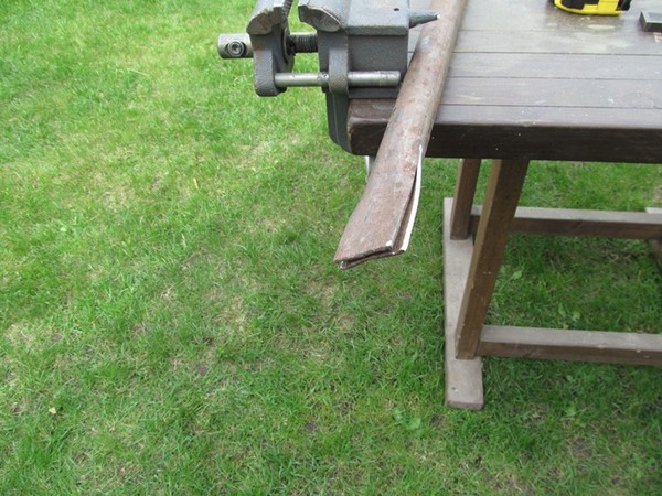 Потом с помощью кувалды и и какой-то матери заплющили конец (для таких дел в гараже у дедушки была добыта наковальня в виде куска рельсы):
