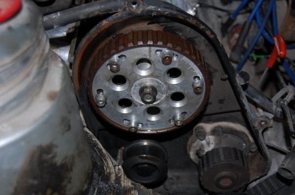 Для компенсации такой погрешности практикуется установка разрезанной шестерни, позволяющей изменить положение ее зубчатого венца относительно ступицы с шагом 0°, в отличии от заводской сплошной шестерни, которая фиксируется только в одном положении и отойти от него можно лишь на зуб вперед или назад с шагом 17° по коленвалу.