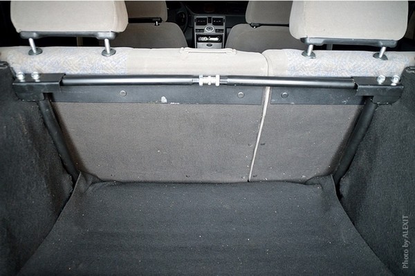 В итоге все было успешно установлено. По эффективности передней распорки написал в начале статьи. Наличие заднего усилителя заметнее, чем передней распорки. Особенно чувствуется при езде по пересеченной местности, даже мелкие поскрипывания полки стали очень редкими. На ровной дороге жесткости конечно прибавилось, но естественно не так, как хотелось бы. Коврик в багажнике в углах упирается в трубы, углы приходится подгибать, но не смертельно, тем более, что он от 2115. А самое главное — наличие этих усилителей заметить трудно, чего и хотелось добиться.