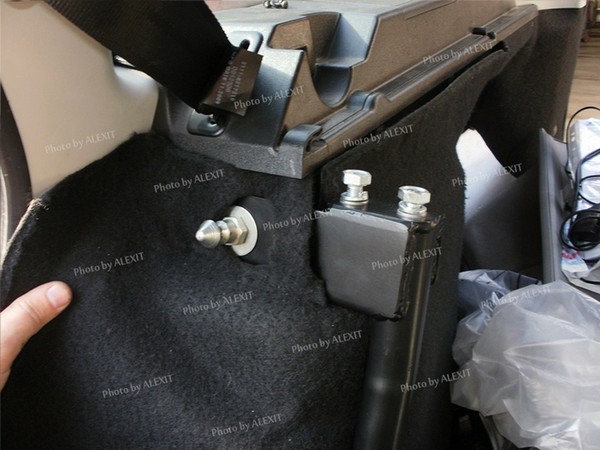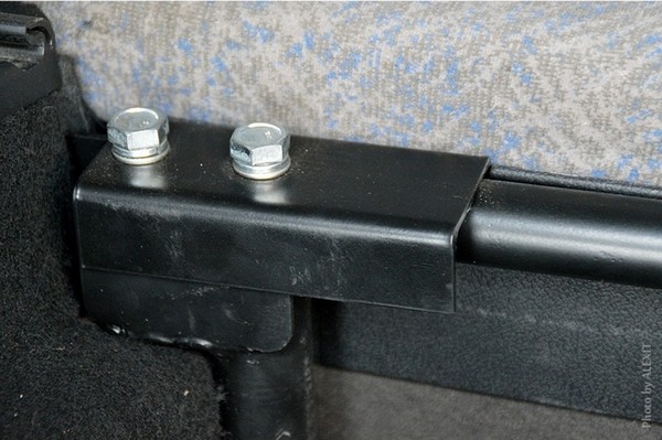 Задние пластмассовые боковины мешаются, но снимать я их не стал, только открутил обшивку и ослабил болты креплений посадочных металлических кронштейнов к кузову, находящихся под боковинами. Понятно, что болты со шляпками для защелкивания спинок сидений меняются на удлиненные из комплекта. А вот чтобы примерить усилитель полностью на месте начинается то, о чем обычно никто не говорит.