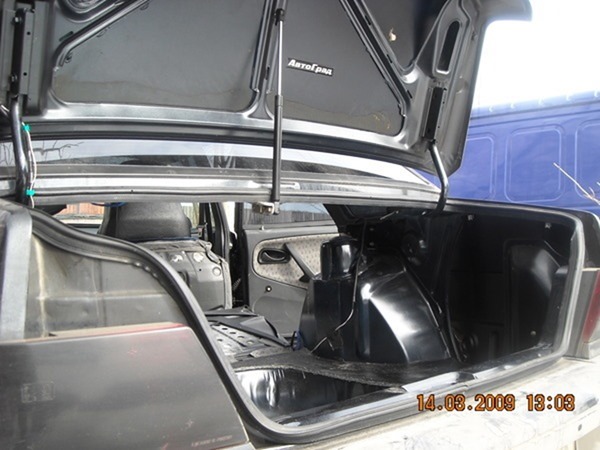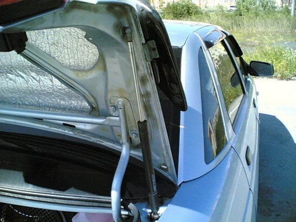 Надоело поднимать грязный багажник руками. Завод, как обычно, сэкономил на опоре 200 рублей. Хотя в Калину седан ставили.