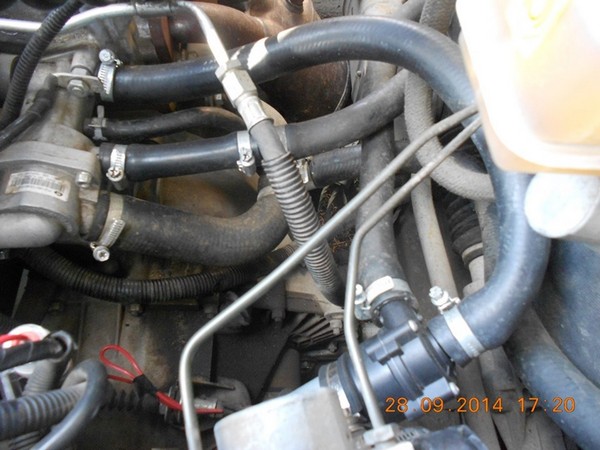 Врезал в подающий патрубок отопителя (номер 2 на схеме). Пишут, что без разницы в какой патрубок отопителя врезать, но не стал проверять.