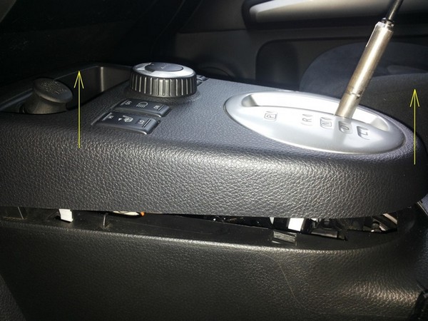 аккуратно подцепив по краям верхнюю накладку консоли, отщелкиваем её наверх