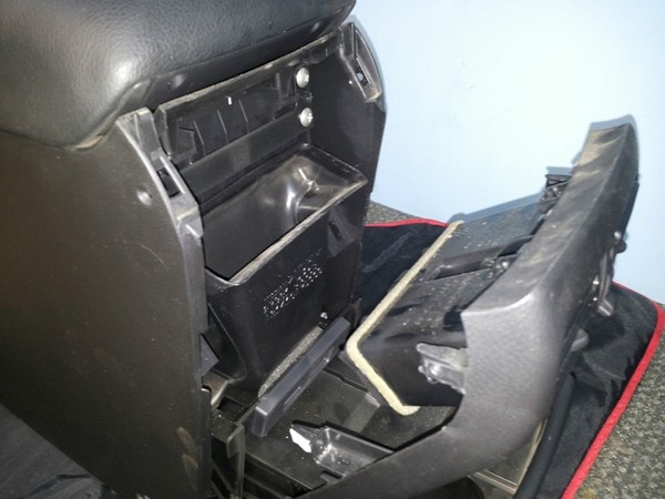 отстёгиваем передние боковинки консоли с двух сторон