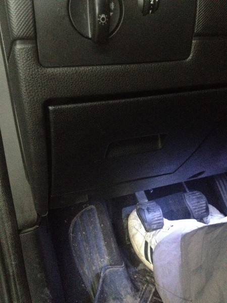 Для начала снимаем накладку у ног водителя чтоб добраться до OBDII и остальных проводов