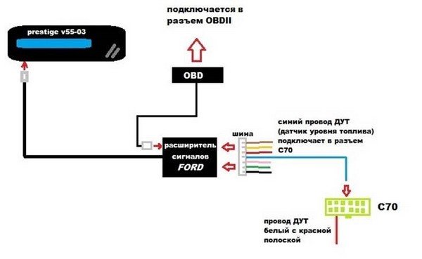 По мануалу я узнал, что за датчик ДУТ отвечает синий провод