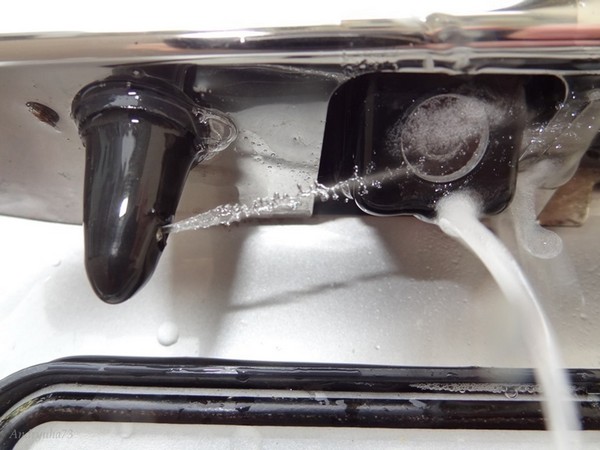 Сначала нужно разобрать обшивку задней двери. В том месте, где стоит соединитель трубок омывателя заднего стекла, ставим вместо этой трубки тройник. Подсоединяем к нему кусок купленного шланга и протягиваем его к месту установки форсунки. Чтобы отмерить место, где будет стоять форсунка, делаем из пластилина заготовку по размеру нашей форсунки, закрепляем её на сабле возле камеры, и, включив зажигание и заднюю передачу, смотрим, чтобы её не было видно в камеру, но и в то же время, чтобы форсунка была как можно ближе к ней. Всё, сверлим отверстие для форсунки, подсоединяем к ней шланг, не забыв про обратный клапан, и собираем обшивку обратно. Осталось только отрегулировать направление струи булавкой.