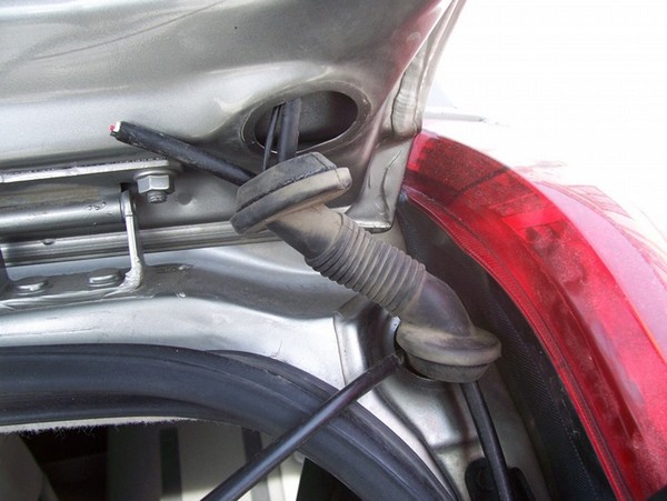 Первым делом определил сторону по которой буду класть кабель. Снял обе гофры, соединяющие кузов и крышку багажника, в правой идет только шланг на омывайку и масса от подогрева стекла. Значит будет правая сторона.