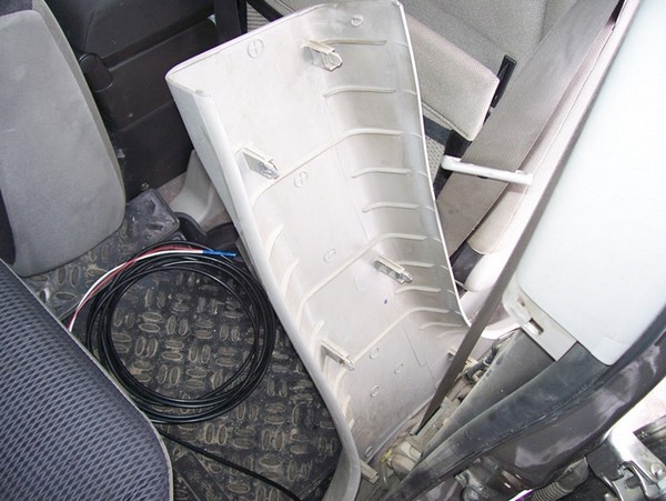 Кабель крепил прямо к шлангу для омывайки на стяжки от багажника до печки и на магнитолу.