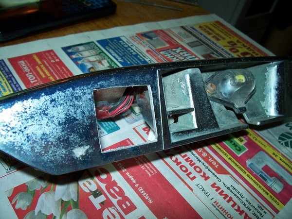 Прежде чем портить хромированную накладку на крышку багажника я сделал макет того самого отверстия чтобы определится с размерами. После перенес размер на накладку, для этого взял толстый маркер, чтобы был запас на обработку отверстия.