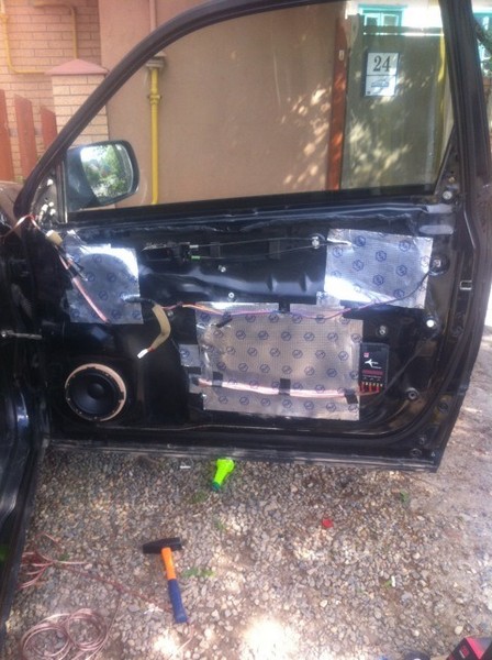 Снимаем заводской динамик отключаем разъемы, удаляем заводскую шумоизоляцию (если ее можно так назвать) и обезжирив поверхность проклеиваем внутреннюю полость виброизолирующим материалом.