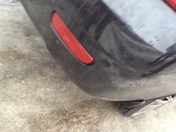 Когда все датчики были установлены, установил обратно ребро жесткости и пошел ставить бампер на место. Ну так как спешил до темна доделать, забыл сфоткать то отверстие через которое протягиваются провода датчиков в багажник, скажу, что находится оно возле левого клапана багажника, через который выходит воздух при закрывании дверей и багажника, а также происходит вентиляция салона, чтобы не потели окна.